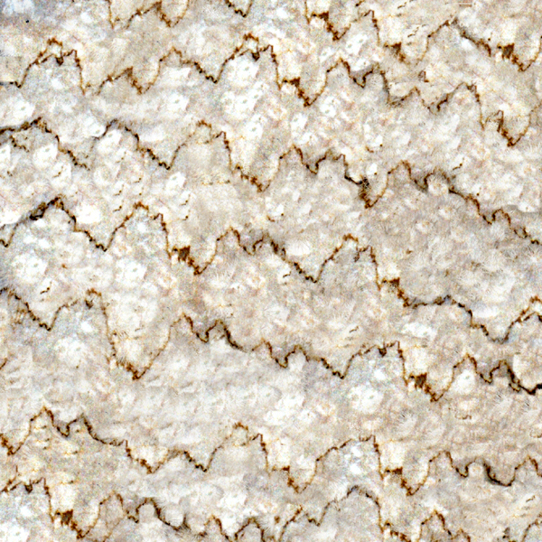 _איור 17.26: תפרי המסה._ תפרי המסה (סטילוליטים, (stylolite על פני משטחי סלע. אלו הם מעין קווי תפר משוננים בתוך סלעי גיר, שאינם ממולאים בקלציט משני. צורתם השכיחה היא צורת זיג-זג. מקורם בהמסה המתרחשת במשקע באמצעות תמיסות לחץ (pressure solutions) - תמיסות הנעות במשקע המתהדק והולך תחת עומס המשקעים המצטבר מעל. (ש.ש.)